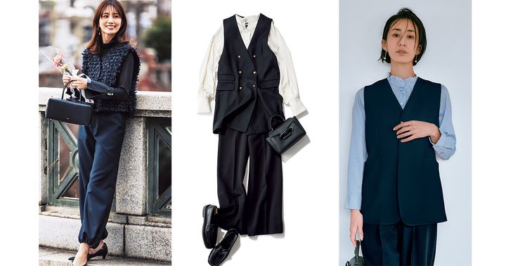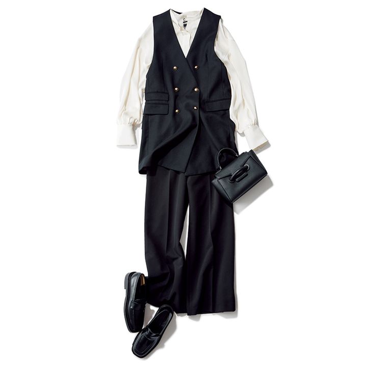 ゆるパンツに映える ショート丈ジレで 今どきバランスが完成