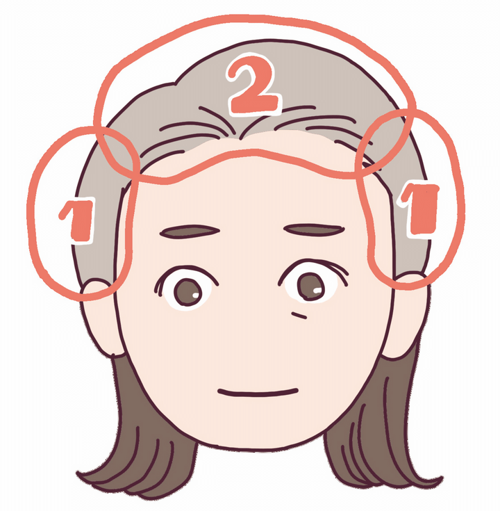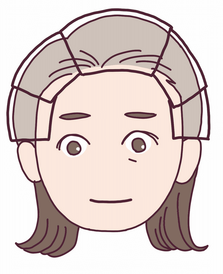 白髪染めは温度が高いと色が入りやすくなります。白髪が目立ちやすい額の生え際と側頭部の生え際とでは、額のほうが体温が高く染まりやすいため、側頭部→額の順に塗ると、色がきれいに入りやすくなります。