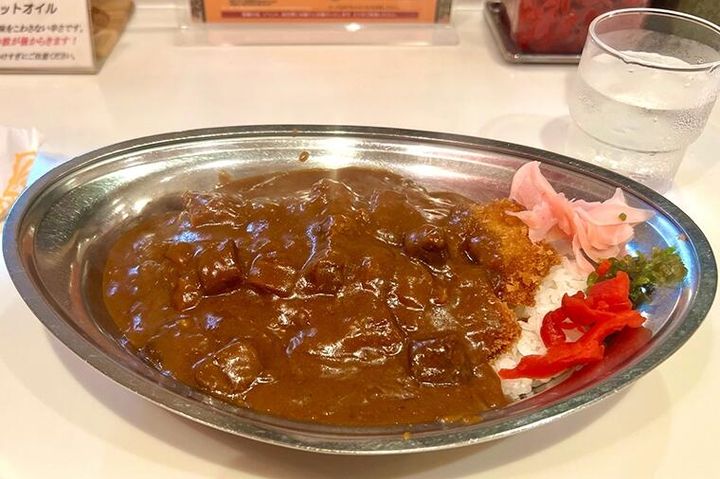 カウンター上の辛味オイルをかけると、なおさら昭和の辛口カレーだ。つけ合わせの福神漬けや、生姜の甘酢漬(いわゆる寿司店の「がり」)など、ほのぼのとさせてくれる。スパイスカレーやスリランカ風、ネパール風、タイ風などを食べる機会が多いが、この昭和の洋食店の風情もなかなかに食指が動くタイミングというものがある。まさしく今日がそれだったのだ。