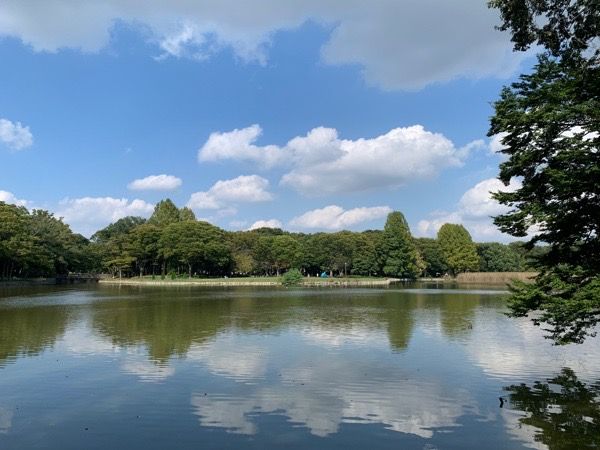 洞峰沼の周囲では、スケッチを楽しむ人たちもいました。 水面に映り込んだ空の青と雲の白のコントラスト。 確かに、絵に残しておきたい風景ですね。