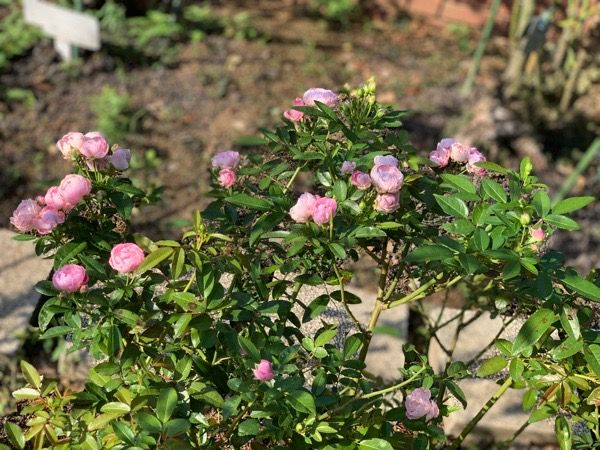温水プールの建物前には、バラの植栽がありました。