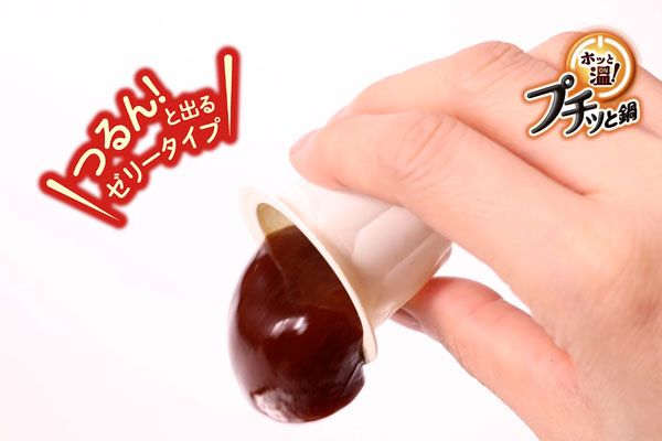 ポーション容器から、つるん!と出るゼリータイプが特徴の「プチッと鍋ホッと温」は、とろみ成分により粘度が高くなった鍋つゆの「取り出し時の容器への付着」や「調理時の溶け残り」などのこれまでの課題をクリアした商品です。