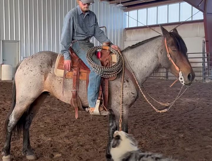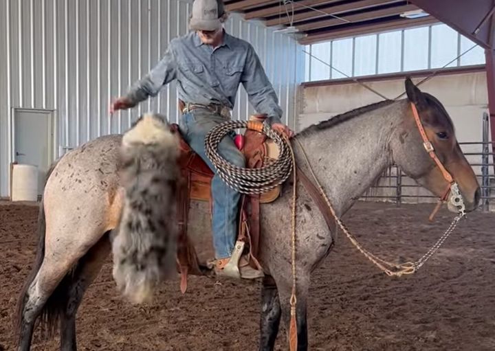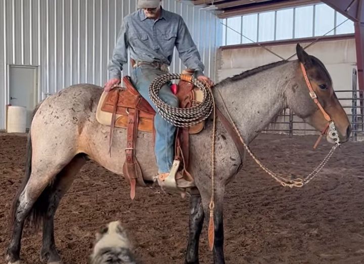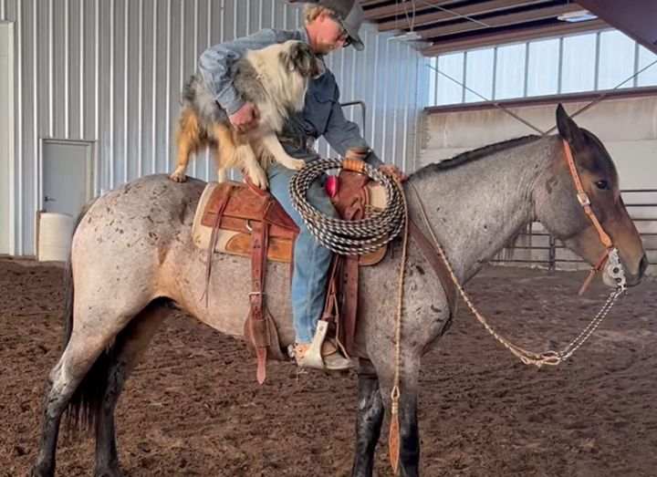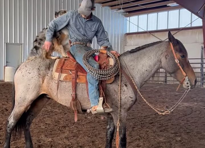 飼い主さんがまたがる馬に一緒に乗りたい様子を見せる愛犬。 馬の足元までやってくると、タンデムさせてとばかりに大胆な行動に出ました!!