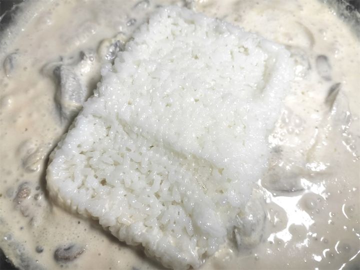 レミさんの料理と言うと奇抜なイメージがあると思いますが、この料理のようにしっかりとしたものも多く、今回もとてもおいしく頂きました。しかもたった15分で出来ちゃうとはうれしい限り。味はバターやマッシュルームの旨味はもちろんのこと、なんといっても牡蠣の旨味が全体に広がっていて、コンフレークのカリカリ、乳製品の旨味とご飯のバランスが絶妙です。おそらく、多いかなと思われる乳製品が味のポイントになっているのだと思います。このレシピには乳製品が結構使われていますが、実は牛乳よりも牡蠣の方が鉄や亜鉛、ビタミンB12といった体によい成分をバランスよく含んでいます。牡蠣の身が乳白色であることも由来の一つですが、海のミルクという別名が付いているのにもうなずけます。