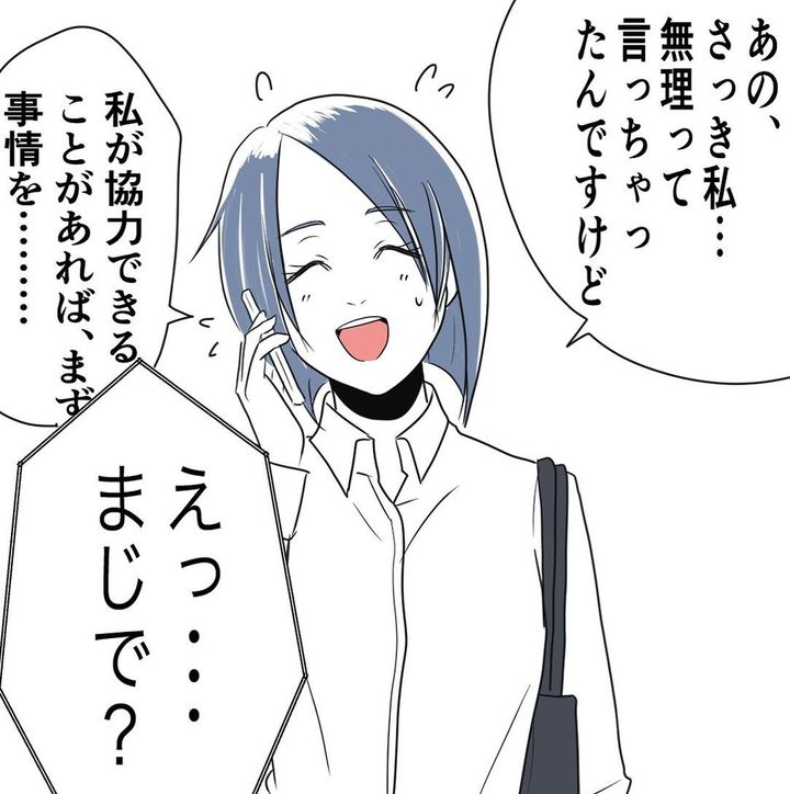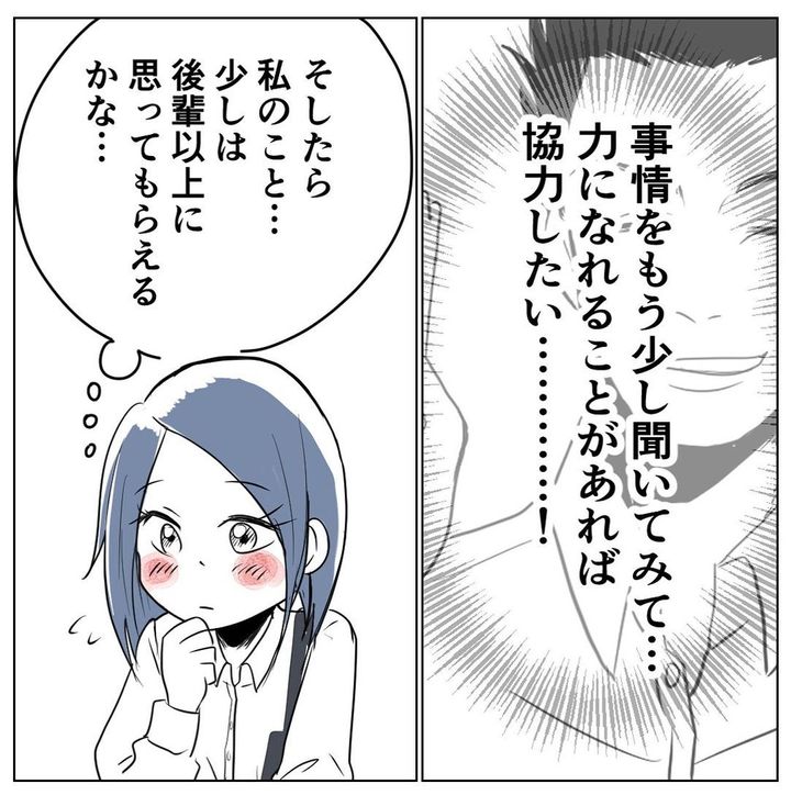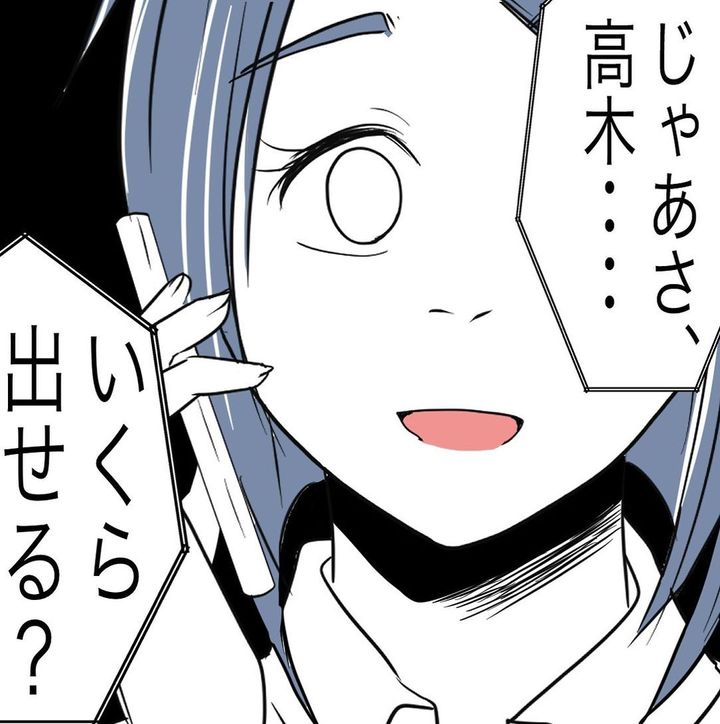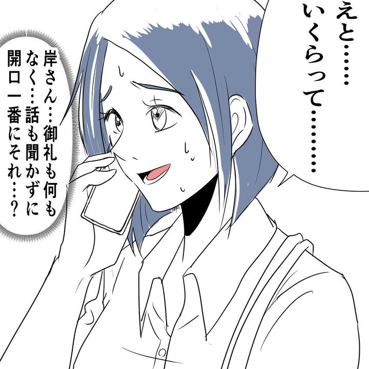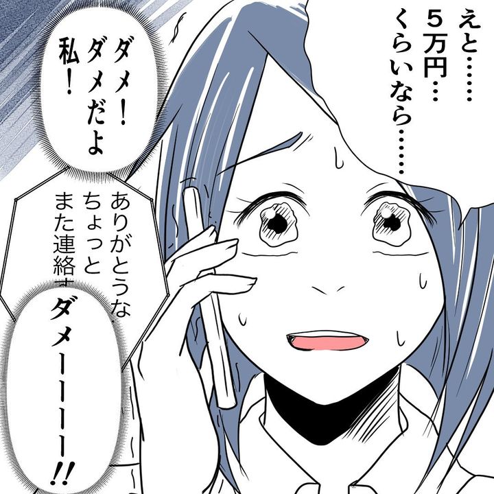 岸さんに「後輩以上に思ってもらいたい」と考えていた高木さんは、事情を聞いてみることに。岸さんに電話をかけ「協力できることがあれば…」と切り出すと「いくら出せる?」と聞かれました。高木さんは「ダメだよ私!」と心の中でお金を貸すことを止めますが、「5万円…くらいなら…」とつい答えてしまったのでした…。