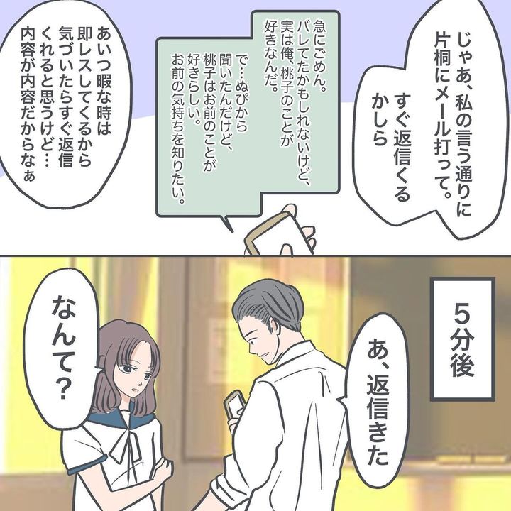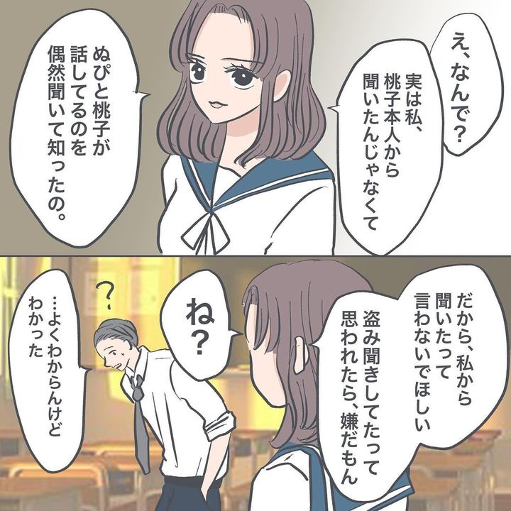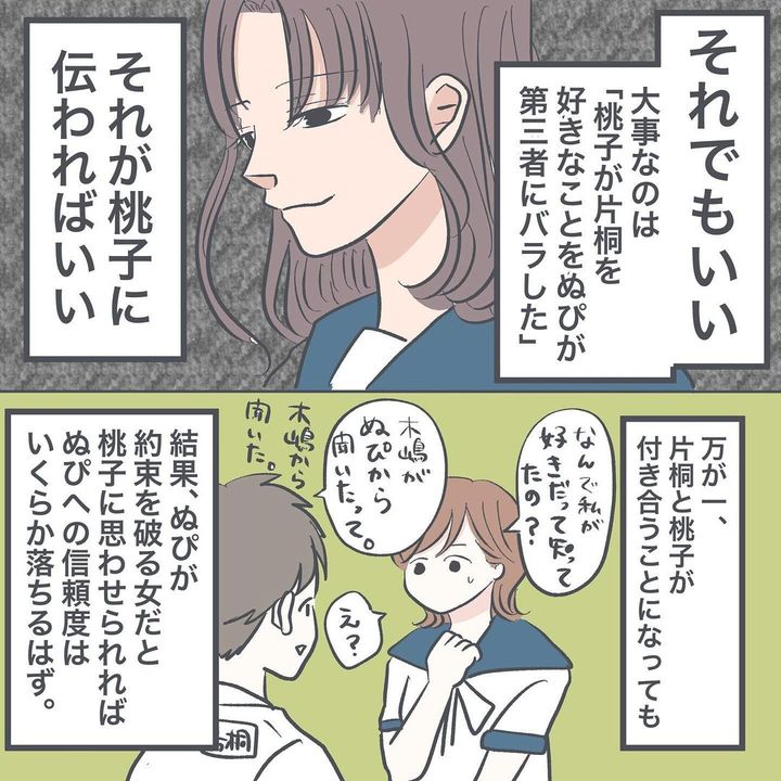 桃子さんが片桐さんのことが好きであることを、木嶋さんにばらしてしまう絵里奈さん。そして、それをばらしたのがぬぴさんであると嘘をつき、桃子さんの「一番の友達」になろうとたくらむのでした。