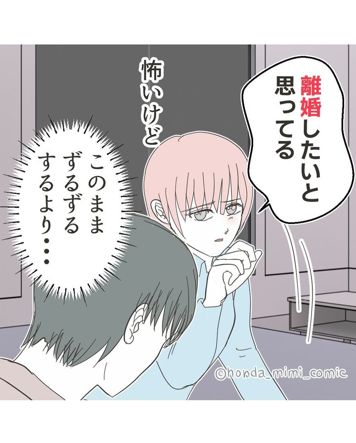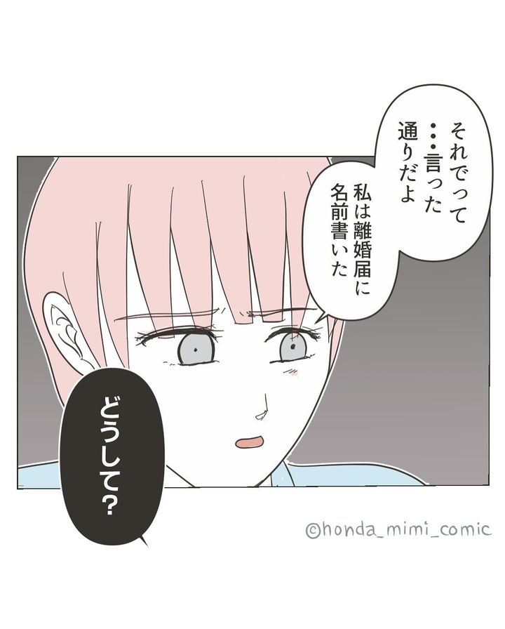 夫のワタルさんに対して、離婚を切り出したミミさん。しかし、「それで?どうして?約束と違くない?」と、真剣に取り合ってくれません。それでも、気持ちを強く持ち、離婚したいと訴えるミミさんなのでした。