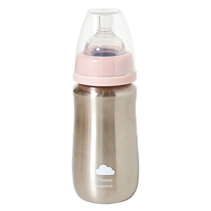保温保冷効果が6時間継続するスタイリッシュなステンレス製哺乳瓶。あの名品椅子のように、蓋の付け替えで大人まで使用可能!ステンレス製哺乳瓶¥4,180(ディモワ)