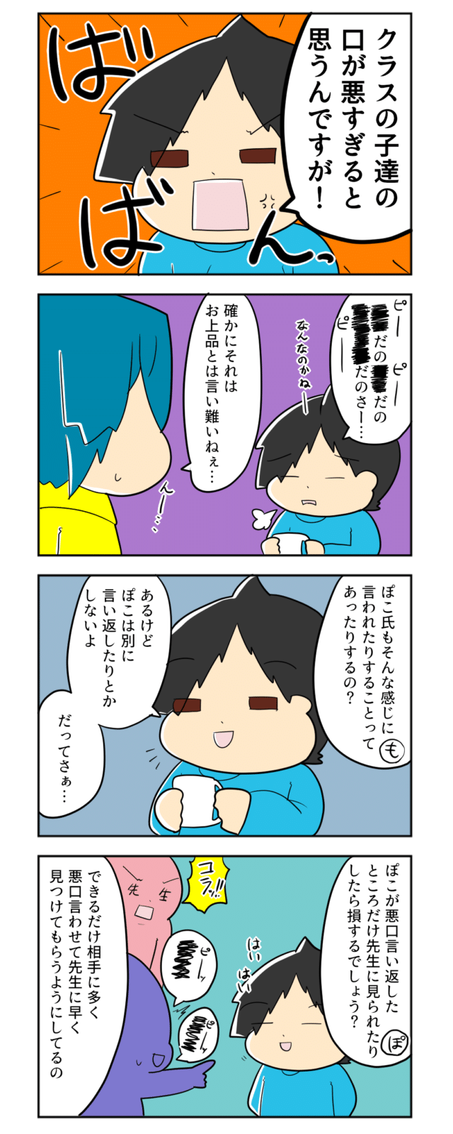 3. 策士だな。悪口は言い返さず敢えてたくさん言わせて先生に目撃してもらう息子|mochikoの育児マンガ