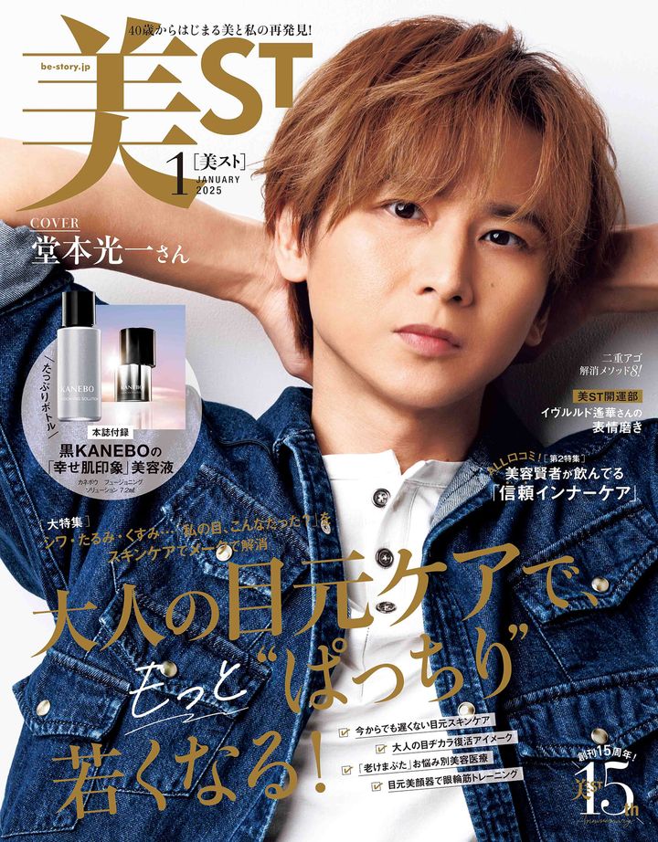 お待たせいたしました!11月15日(金)発売・美ST1月号の表紙解禁です!本誌・特別版ともに堂本光一さんが表紙を飾ります!付録は、黒KANEBOの美容液をたっぷりミニボトルで、特別版にはさらにBAUMの森林浴美容®セットとスカルプDのほぼ美容液マスカラが現品付録でつく豪華仕様です!お楽しみに!