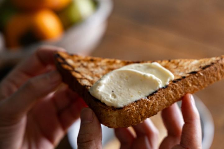 Aセットのパンには、柿のバターがのっています。季節を感じられるフルーツを使ったバターが楽しめるのも、「itoma morning and night」での朝食の密かな楽しみです。