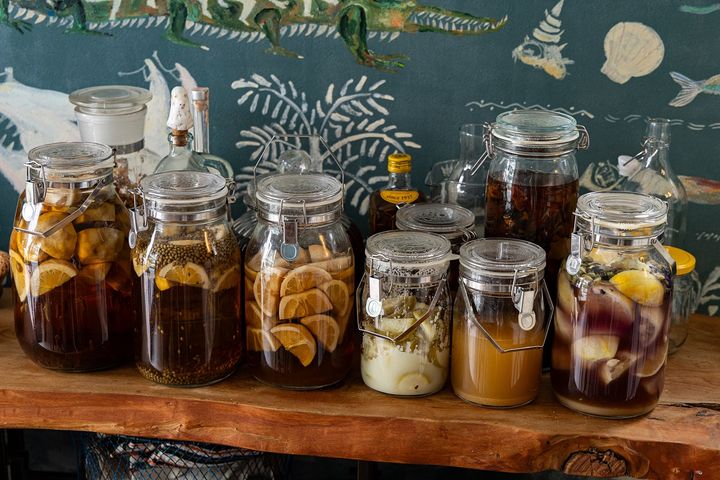 なお、店内の絵の壁の棚には、レモンをコリアンダーシード、レモングラスなどのさまざまなスパイスに漬け込んだ瓶が置かれています。こちらは、料理や夜に提供するお酒に使っているそう。レモンサワーは常に、4・5種類があるそうです。