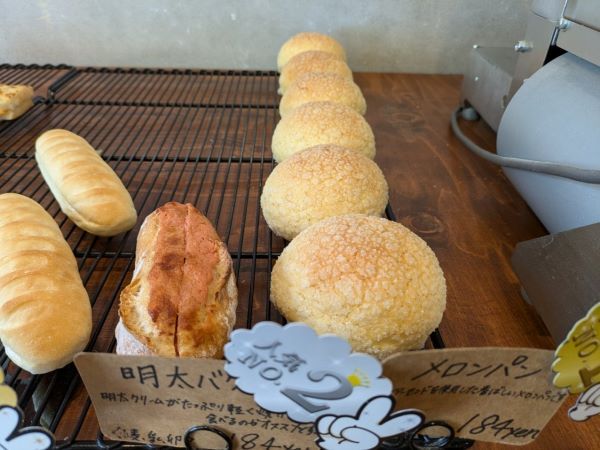 製造は、オーナーさんが夜明け前から仕込んで、一人で行っています。現在人気ナンバーワンのメロンパンは、皮付きアーモンドを使用しているため香ばしく、外はカリッと中はふわっと、口溶け良く仕上げています。