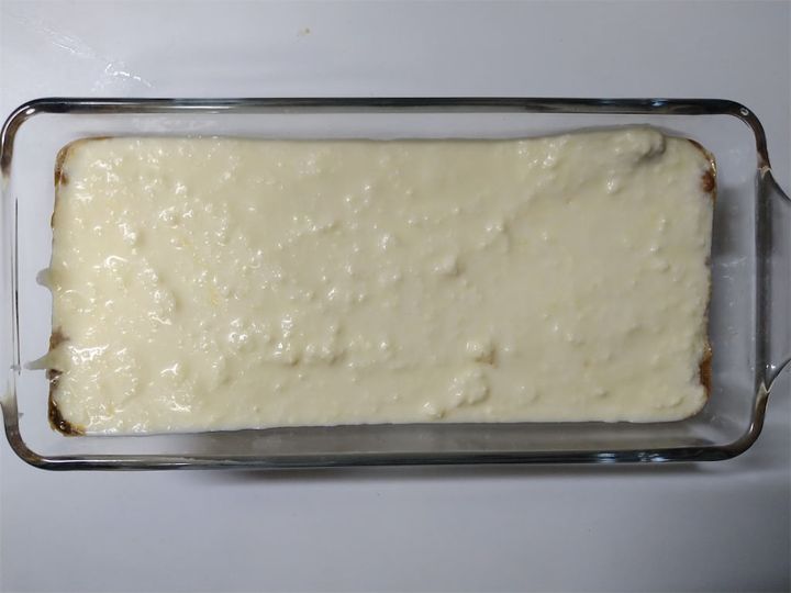 5.その上に2の豆腐とクリームチーズを混ぜたものを入れ、冷蔵庫で2時間ほど寝かせる。