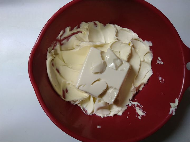 1.ボウルにクリームチーズを入れ、滑らかになるまで混ぜる。豆腐を入れ、さらに混ぜ合わせる。