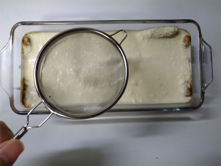 茶こしを使うとまんべんなく綺麗にかけることができて便利です。