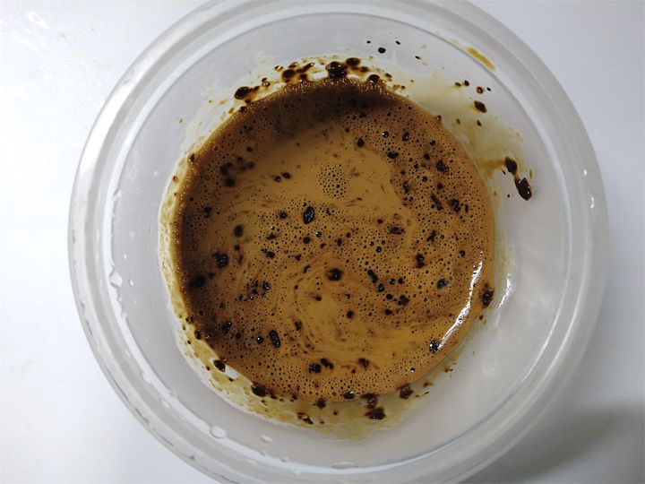 4.インスタントコーヒーをお湯で溶かしたら、3の上に注ぐ。