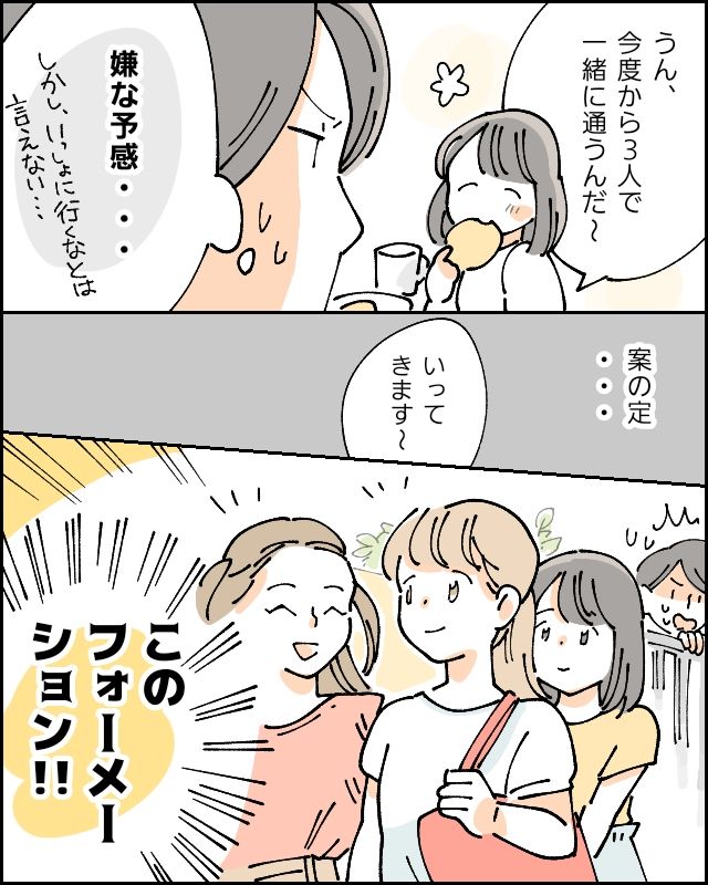 3. 明らかに会話の邪魔をして横並び、娘だけがポツン。娘の友達がしんどい[4-1]|ママ広場マンガ