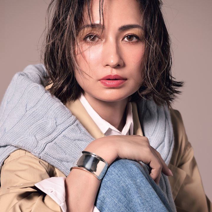 トレンチコート¥88,000(ハウス オブ ロータス)シャツ¥35,200〈パクイート〉ニット¥68,200〈カルティカ〉(ともにチェルキ)デニム¥31,900(Theory luxe)バングル¥272,800(ソフィー ブハイ/エスケーパーズ アナザーワールド)