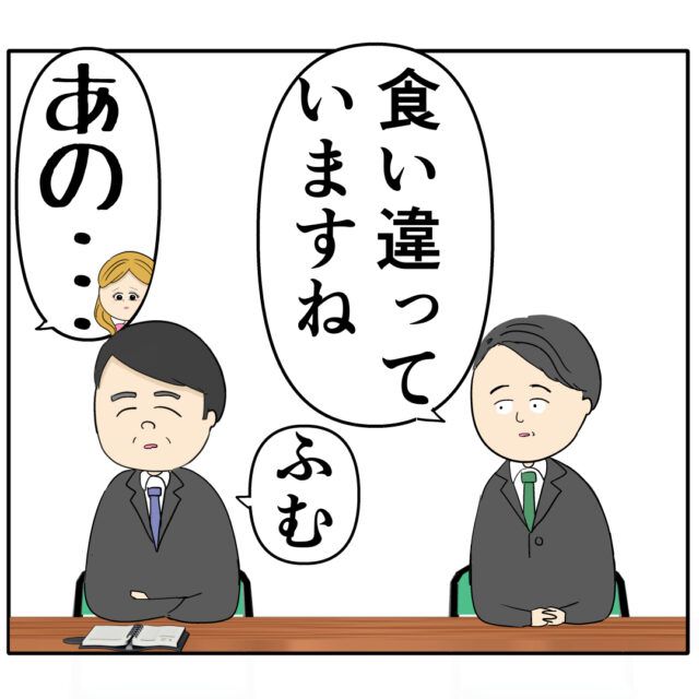 全く違う証言が出たことで「食い違っていますね」「ふむ」と話す部長と課長、すると「あの・・」とふり子さん。