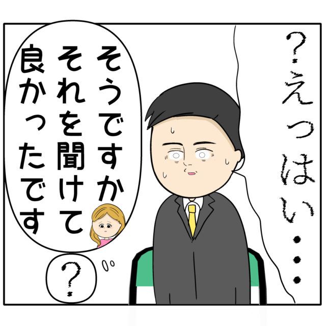 「?えっ・・はい・・」何事かと動揺しながら答える良し男さん、すると「そうですか。それを聞けて良かったです」ふり子さんが続けます。