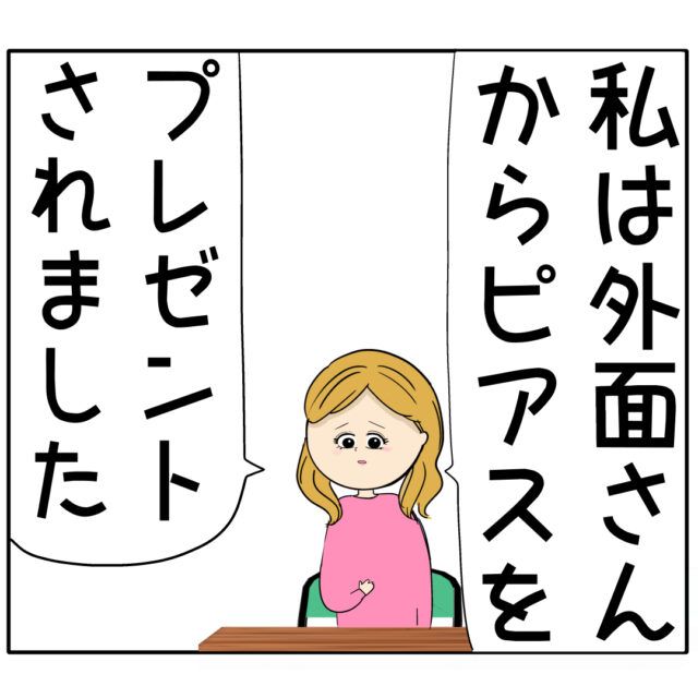 「私は外面さんからピアスをプレゼントされました」