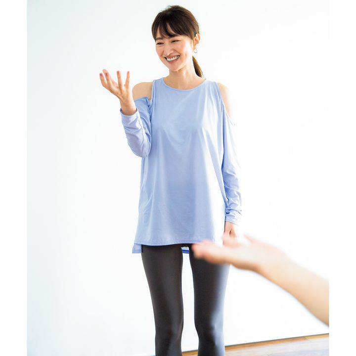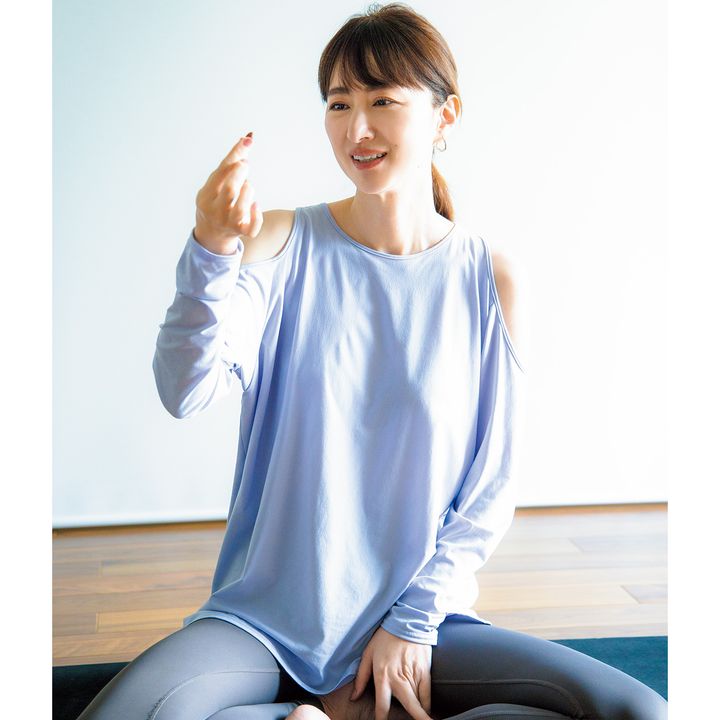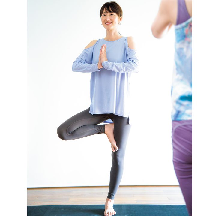 プルオーバー¥13,200レギンス¥12,100(ともにジュリエ ヨガ アンド リラックス)ピアス¥4,180(ミミサンジュウサン/サンポークリエイト)