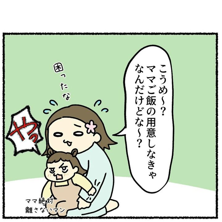 娘と遊んでいた梅(佐伯梅)(@koumesuke)さんは、夕飯を作る時間になったので遊びをきりあげとうとしますが、娘が離してくれません。それを見た夫は、代わりに夕飯を作ろうとキッチンに立ちますが?どうぞごらんください。