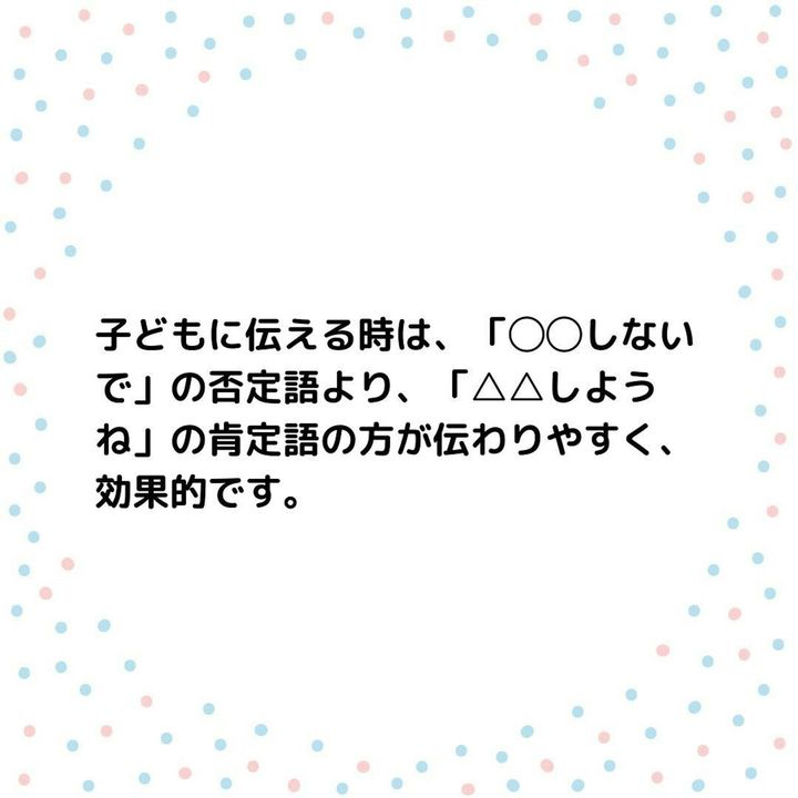 子どもへの声掛け、難しいですよね。「走らないで!」「お店の商品に触らないで!」など、無意識に「~しない」という言い方をおしていませんか?目の前で起きていること、起きそうなことに注意を促しているつもりでも、子どもにとってはわかりにくい表現なのだそう。インスタグラムで「保育士×パパ」目線での発信をしているゆうき@保育士パパ(@hoikushipapa)さんの投稿から、具体的にどのように伝えるといいのかご紹介します。