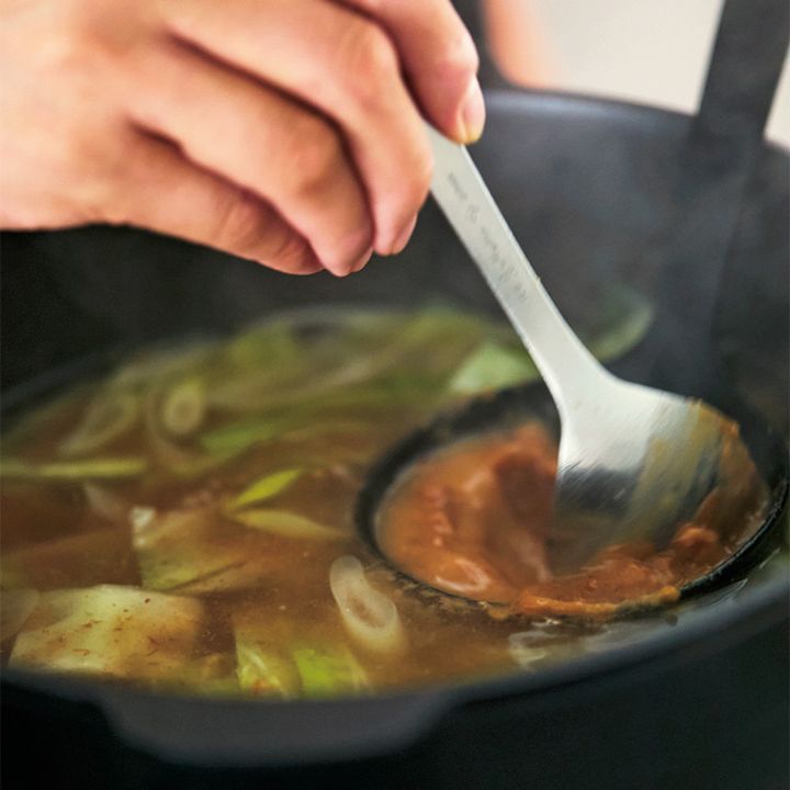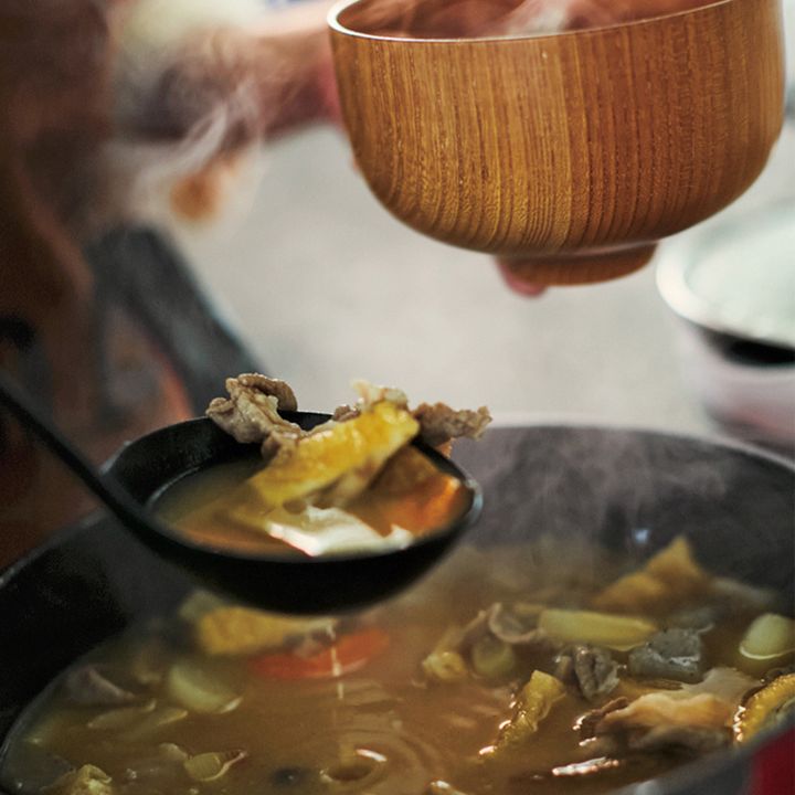 豚汁の何がいいって、その懐の深さ!何を入れたっていいし、どんな形に切ってもいい。もう豚汁万歳!という感じです。とは言いつつ、ずっと作り続けるものだから、飽きないよう切り方や食材を変えて、毎回自分なりのテーマをつけて作っています。秋だったらきのこをたっぷり入れてみようとか、冬は赤味噌でどっしりとした味にしてみようとか。とくにお味噌はこだわっていて、昔ながらの製法で作られた自然発酵しているものを選ぶようにしています。我が家では豚汁は週1ペース。日曜日は冷蔵庫のお掃除目的で豚汁を作って、残りものをキレイに使い切ります。子どもたちも「日曜は豚汁でしょ」ってぐらい、このルーティンはすっかり浸透(笑)。