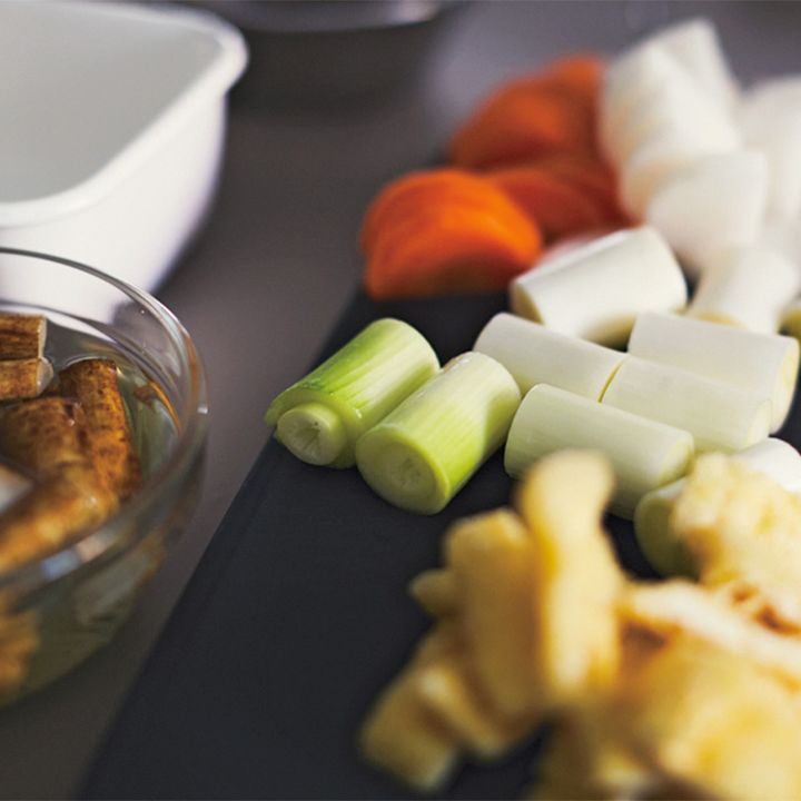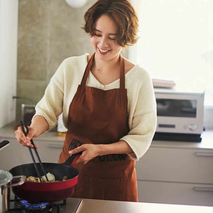 ママにも花金ください!って感じで金曜の夜は家族で外食、土曜日もなんだかんだ外に出がちなので、日曜に豚汁を作って食べると、冷蔵庫だけじゃなく体もリセットされるんです。とはいえ何も作りたくない!って日もありますよね。私はそういう雰囲気を家で出して、誰かが食べに行こうって言ってくれたら行くし、言われなかったらしぶしぶ作ります(笑)。お料理って慣れで、やり続ければ続けるほどコツを摑めて楽になるけど、それまでが大変。だから作らなくてもいいし、作ったらなおいいし、作れない日があってもいい。私は土井善晴先生が提案している「一汁一菜」にとても賛同していて。もう豚汁があったらあとは白米だけで充分!立派な夕飯です!