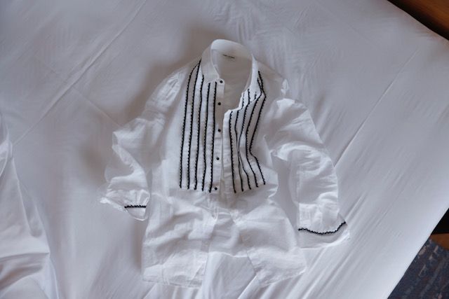 撮影はお盆時期、シーズンの変わり目といろいろことが重なり、なかなか洋服の準備が難しい時期。それでも敏腕スタイリストさんがおしゃれ好きな千賀さんのために何枚も揃えたのは誰もが知っている男性人気も高いメゾンブランドのアーカイブたち。残念ながらアーカイブのためクレジットは載せられませんでしたが、どのシャツも千賀さん似合っていました。最終的に選んだのが、一番王子さま感の強いフリルシャツでした。