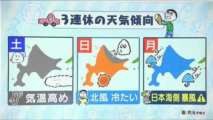 HBCテレビ「今日ドキッ!」の番組内でも独特(?)なイラストを使って天気をお伝えしています。