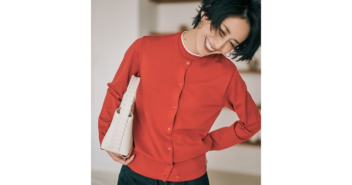 今年一番に取り入れたいカラーは赤。ベーシックな印象のデザインなら気負わず着られそう。白T見えの衿元も付いているので、見える分量とかバランスに悩むことなく、重ね着が決まります。写真のレッドのほかに、ベージュ、ネイビー、グレー、ドットの5色を販売します。2サイズ展開。