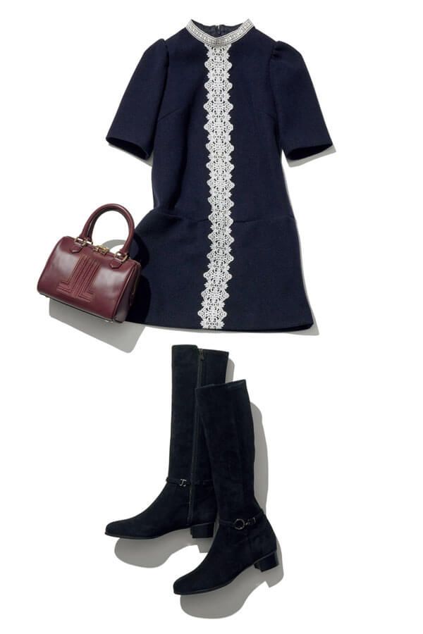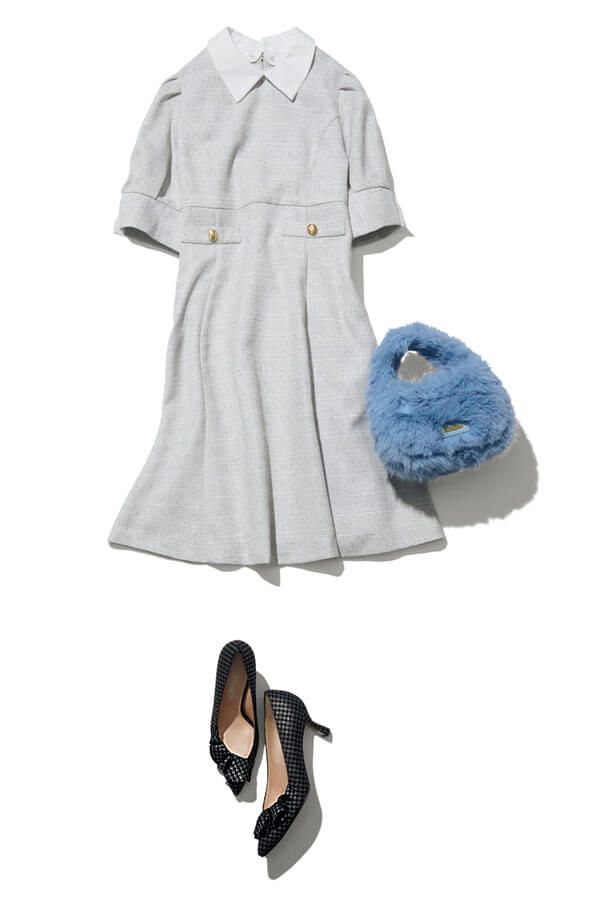 ワンピ ース¥16,500/MERCURYDUO(MERCURYDUO ルミネエスト新宿店) バッグ¥31,900/ランバン オン ブルー(クイ ーポ) 靴¥44,000/銀座かねまつ(銀座かねまつ6丁目本店)