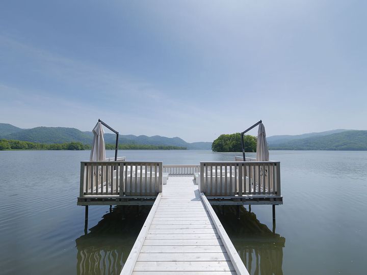 バースペースの奥に進むと、続く桟橋の先には湖に浮かぶ「湖上テラス」がある
