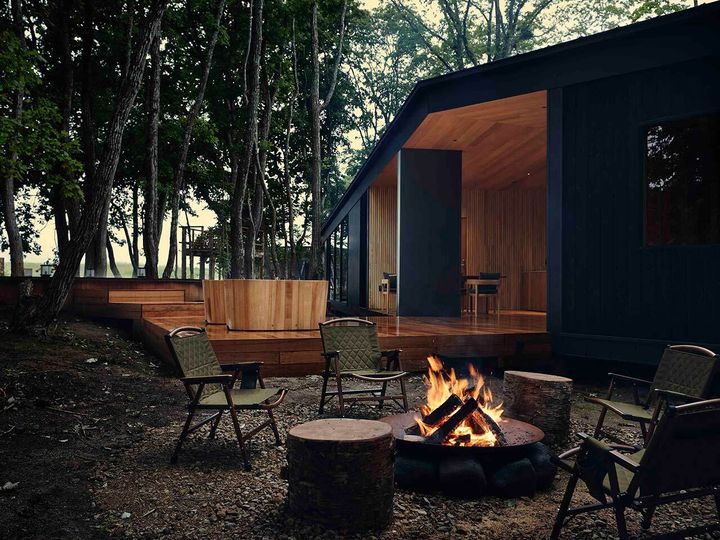 「新千歳空港から車で30分の近さで大自然に佇む『SONEKA』。サウナ付きヴィラ『Nitai』がお気に入りでクラフトビールサーバーが客室にあるのも嬉しい。