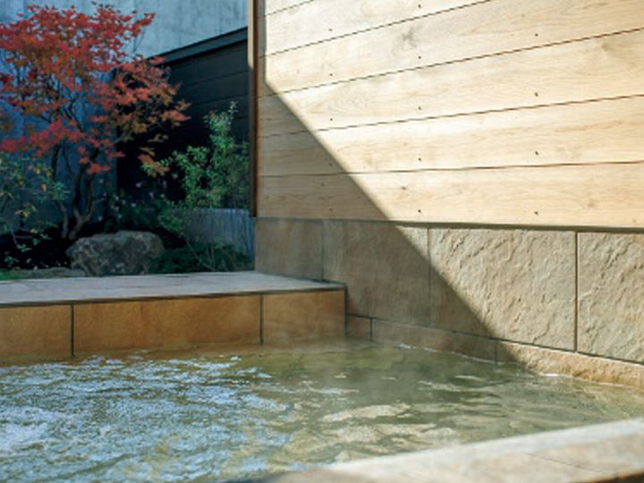 21室すべての部屋に温泉を有し、時に金色に見える自家源泉は低張性・アルカリ性で肌触りが滑らかなのが特徴だ。