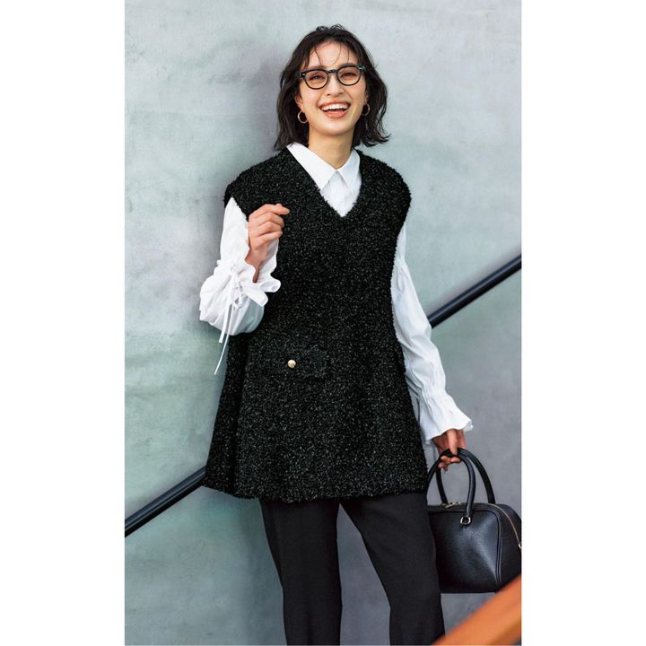 フワフワ質感のボアベストは 羽織るだけでこなれた印象に。 グレーコーデのメリハリUPにも