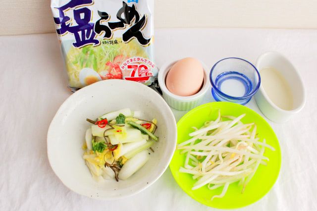インスタント塩ラーメン…1袋 ※しょうゆラーメンでも可