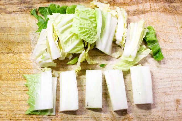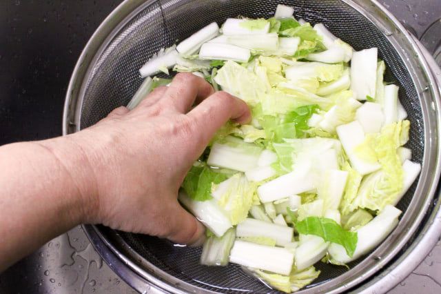 2. 白菜をきれいに洗って水分を軽く拭き取ります。
