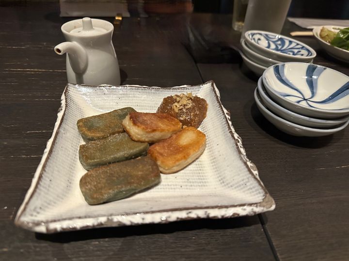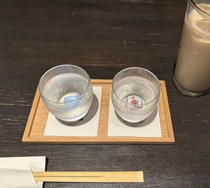 セットで何種類か日本酒が頼めたので同僚といろんなお酒をいただきました✨