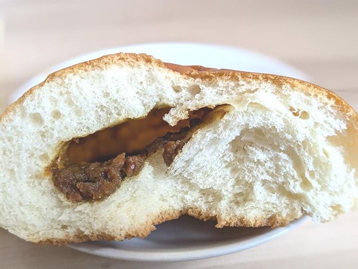 天然酵母使用のふんわりしたパン生地はやや甘味があり、カレーフィーリングはほどよい甘味とピリ辛な味わいが絶妙なバランス。コクと旨味のあるカレーパンは、香ばしい深煎りコーヒーと合わせやすいです。