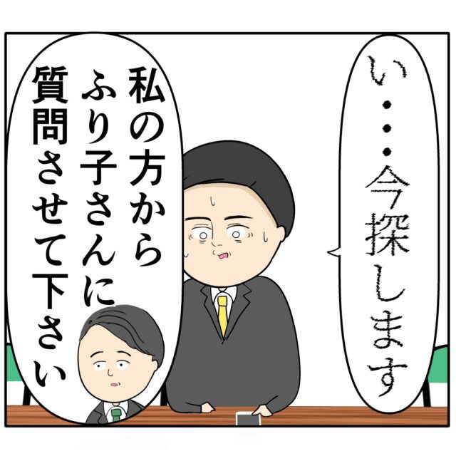 「い・・今探します」外面さんが探していると、「私の方からふり子さんに質問させてください」課長が言いました。