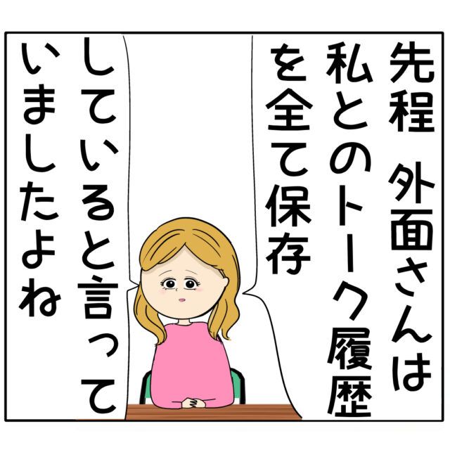 「先ほど、外面さんは私とのトーク履歴を全て保存していると言っていましたよね?」ふり子さんがたずねます。