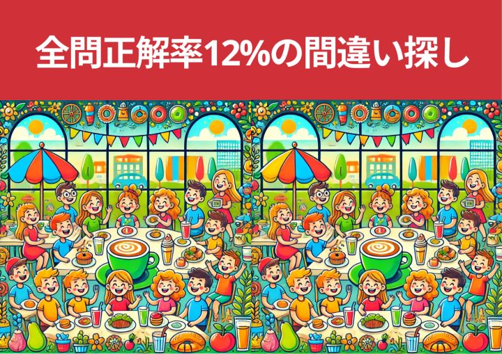 2つの画像には、5つの間違いがあります。簡単に見つけられるものはもちろんのこと、意外と難易度高めの問題も紛れているかも・・・!?編集部全員で挑戦しましたが、たった12%の人しか全問正解はできませんでした・・・。見つけられなかった人は問題下の解説をチェック!