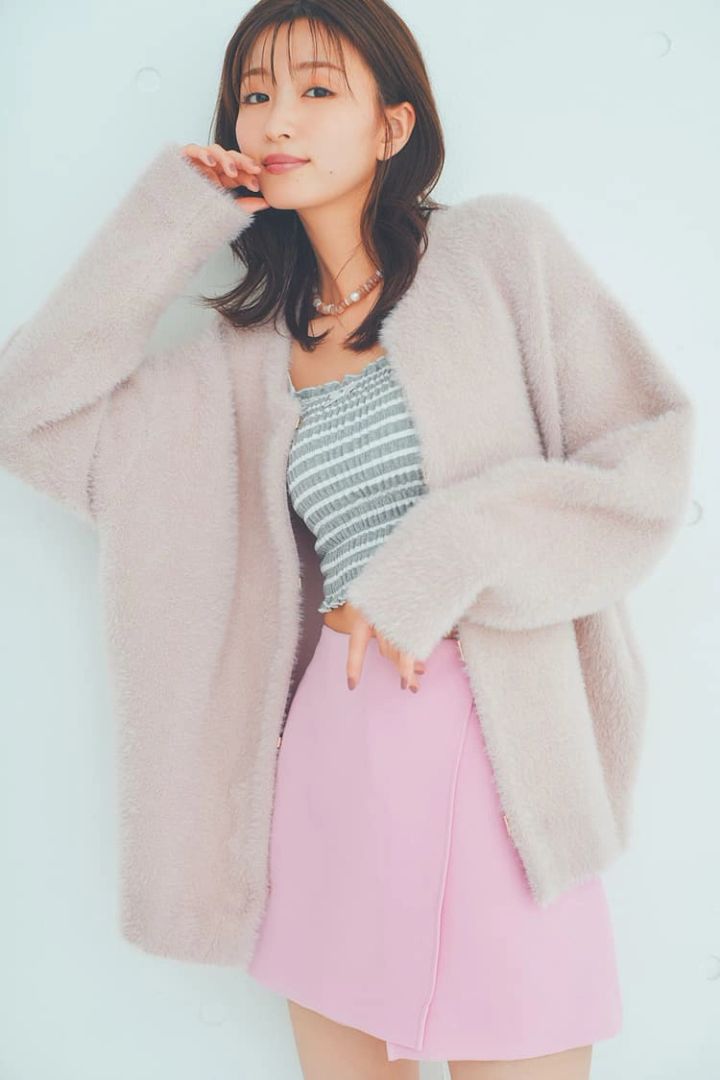 2024年8月号の色こそ恋のはじまりでは、とびきり甘いピンクコーデを披露!守ってあげたくなるような、儚げな表情に思わず惚れちゃう♡