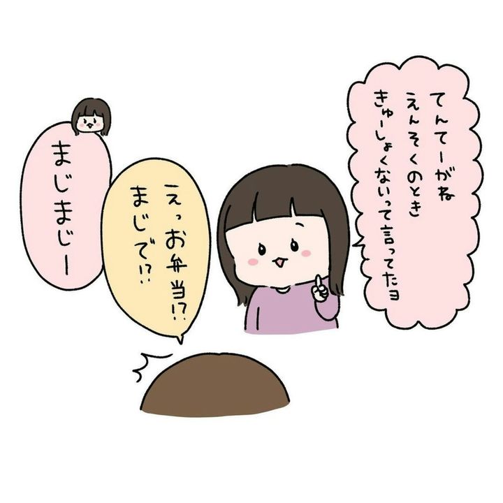 むーさんの娘は終始楽しそうで、見ていてとても微笑ましいですね。遠足も楽しい思い出になったのでしょう。きっとむーさんが愛情込めて作ったお弁当のおかげですね。