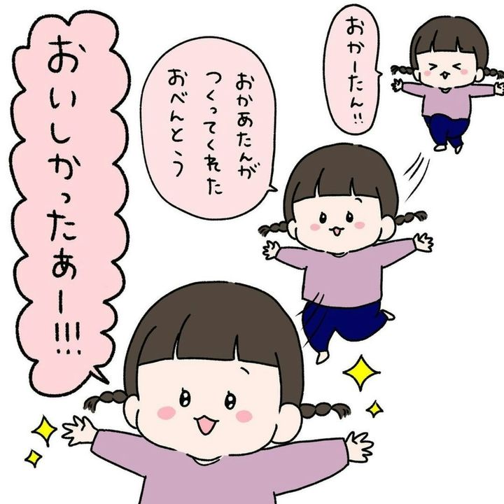 ありがとうの言い合いにもほっこりします。お弁当作りは悩むし、大変です。だけど、こんな風に喜んでくれてお礼を言ってくれたら、報われますよね。