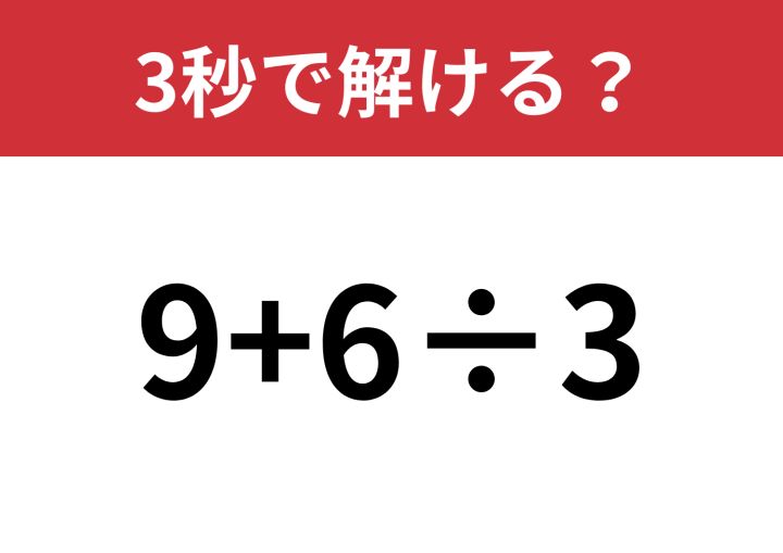 簡単そうな問題だけど、意外と間違える人が多い!?「9+6÷3」3秒で解ける?